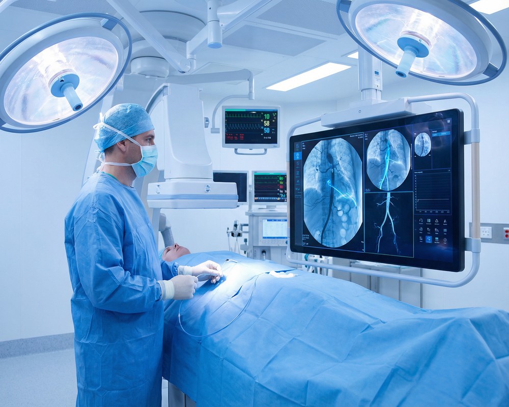 Procedures take place in an angiography suite or hybrid operating room with advanced imaging equipment. Local anesthesia numbs the access site, while sedation provides comfort throughout. Procedure length varies widely based on complexity—from 30 minutes for simple interventions to several hours for complex cases.